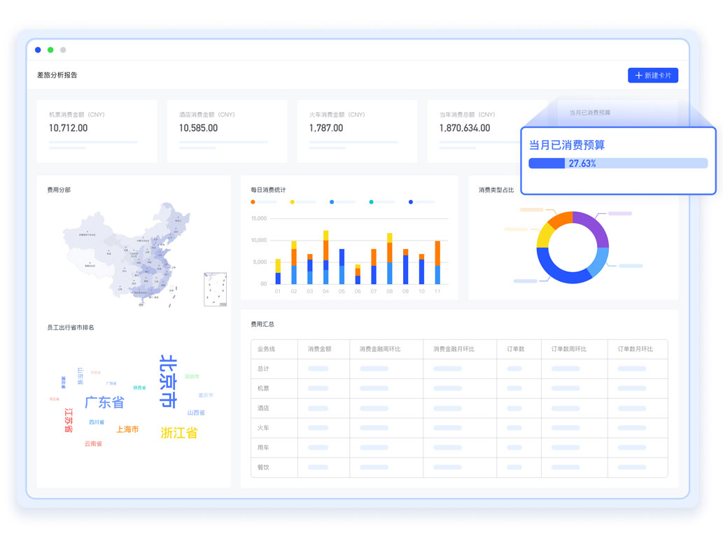 聚合多維度供應鏈資源同屏比價,實現線上訂購與線下因公消費全場景覆蓋,為客戶提供全球化智能差旅和企業消費管理解決方案。從消費到入賬全流程優化,全盤預算與智能化差標動態管理,消費數據可視化分析,拒絕大數據殺熟“買貴賠”和全員參與的節約獎勵計劃“合力省”,最大程度激發員工積極性,沉浸式培育“省”文化。用的絲滑,管的無形,節約顯性成本,管控隱性浪費,助力企業挖出更多凈利潤。