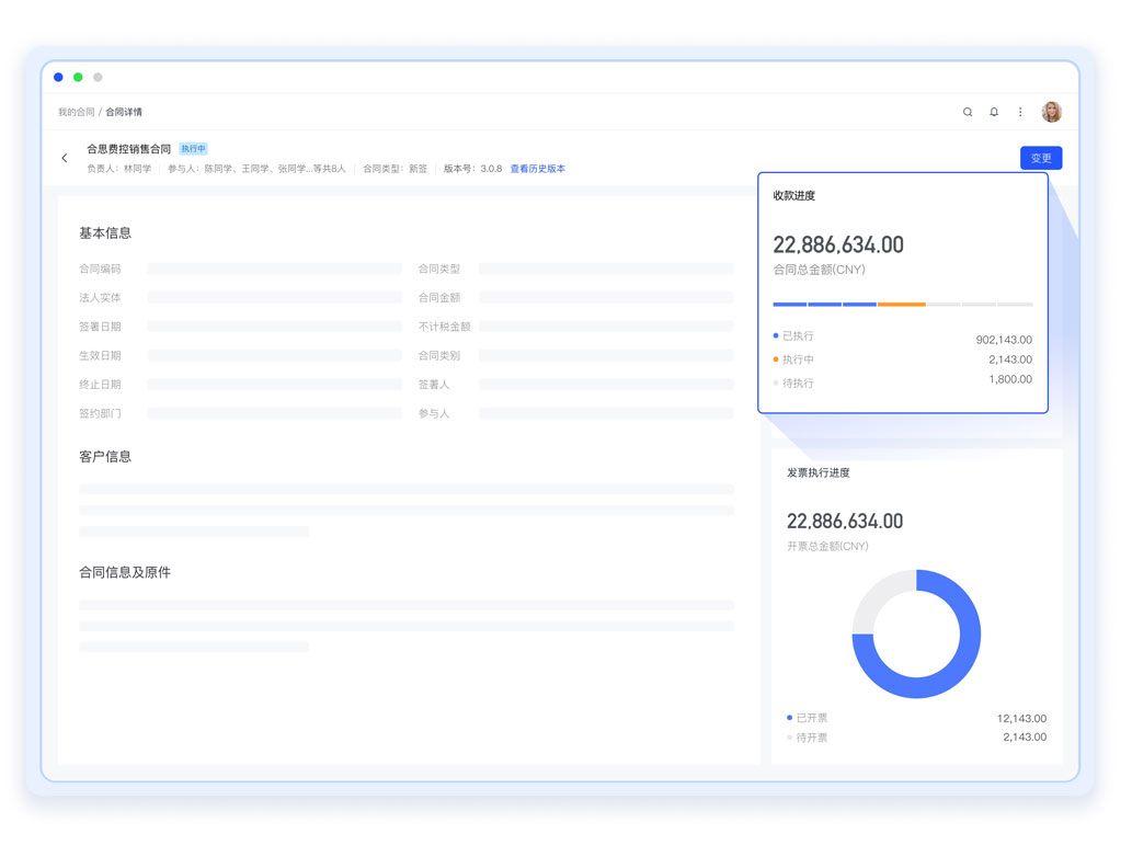 個性化訂單臺賬,聯通銷售業務與財務管理,一鍵開票縮減回款周期。銷售業績透明,隨時了解收款進度,打造銷售“個人收款臺”,提升銷售服務效率。靈活的規則引擎幫助財務收款自動勾稽、清分、對賬和報收,實現資金流、票據流、財務信息流三流合一,收款憑證、銷項發票、合同或訂單與財務憑證的“四票匹配”。